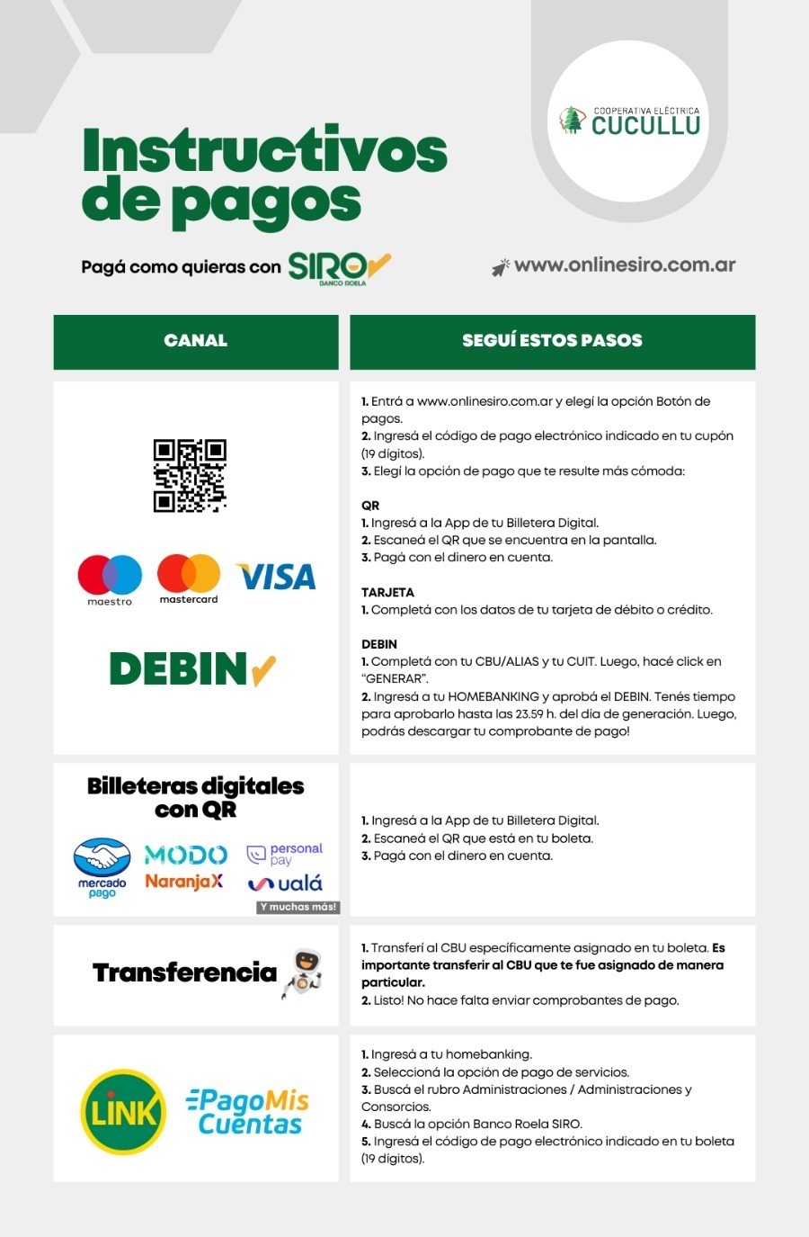 Ahora podés pagar con cualquier medio desde Siro Banco Roela. Buscá el código de pago electrónico en tu factura e ingresalo en siropagos.bancoroela.com.ar